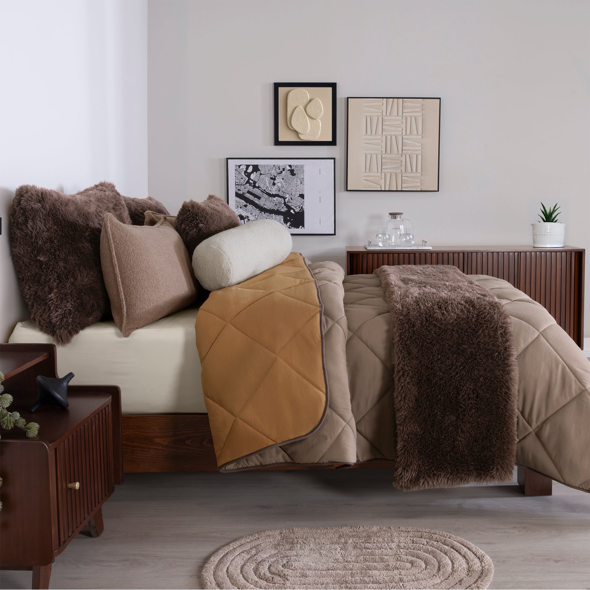 -Incluye 2 fundas bucle.-Incluye cojín bucle.-Incluye cobertor invernal.