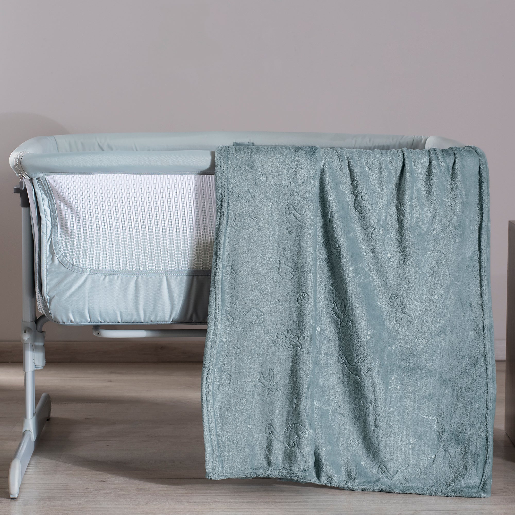 Increíble cobertor con tiernos dinosaurios grabados que le dan una textura novedosa y suave ideal para tu bebé....