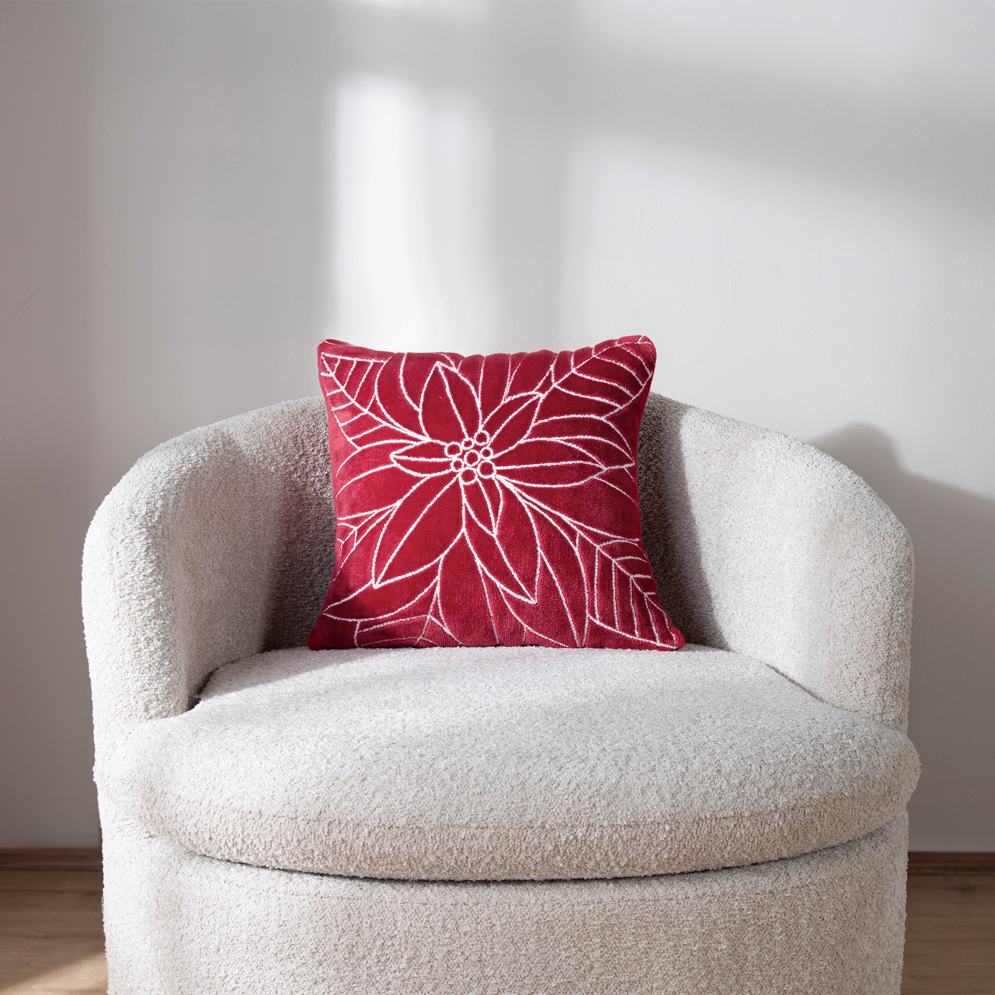 Dale a tus espacios un estilo navideño clásico y elegante con la funda de cojín bordada Nochebuena.